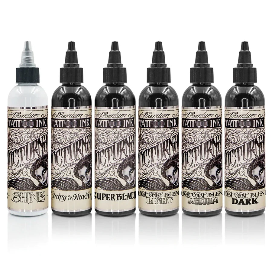 A special blend of tattoo ink created by the world renowned tattoo artists Franco Viscovi and Jack Rudy. Together they worked to provide an ink line that preforms like the drawing inks used in the industry with one important thing in mind: this ink is actually made for tattooing. With the same fluidity as those drawing inks, the Nocturnal Tattoo Inks are darker and shade even smoother. No harsh chemical solvents are used in this ink. Nocturnal Ink is manufactured by Eternal Ink.
